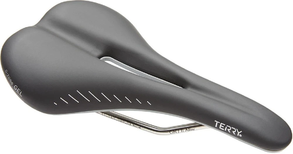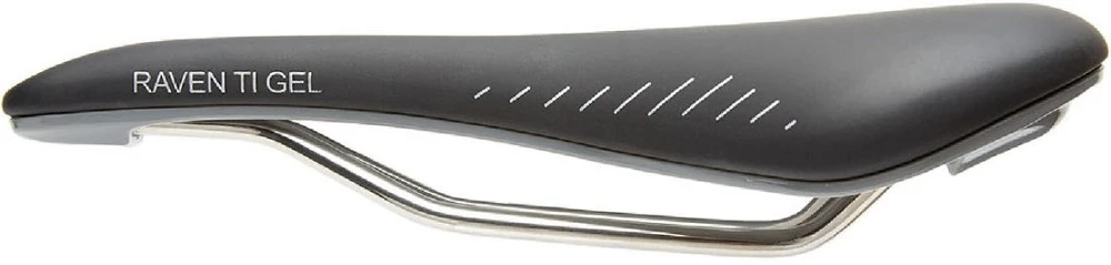 Designed to fit right in the middle of the spectrum between wide and narrow saddles, this Terry Raven Ti bike saddle provides comfort while minimizing pressure and chafing.
