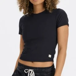 Pair the women’s Vuori Mudra Fitted T-shirt with your favorite joggers for a sporty look in and out of the studio. Its effortless high-hip fit makes it ideal for layering.