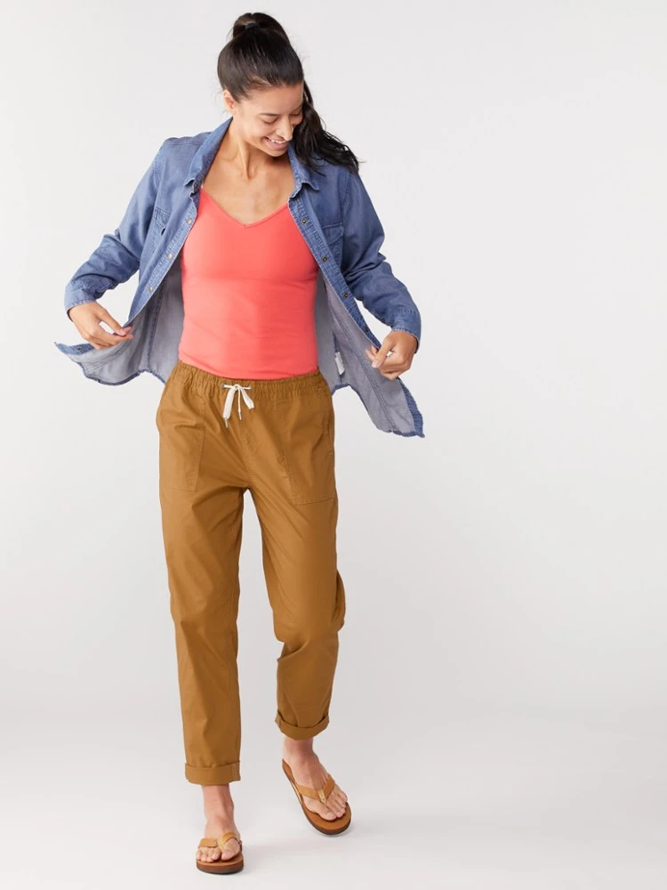 A fresh take on a classic, the women’s Vuori Vintage Ripstop pants offer a looser fit and a comfortable 5-pocket design. Roll up the raw hem to switch things up for a whole new look.